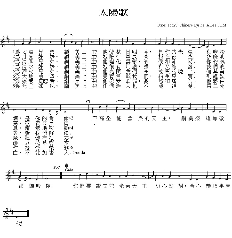 音樂 Music: Unknown、 歌詞 Lyrics: St Francis,adapted
