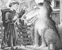 《小花》第21章:聖方濟如何馴服了嘉比奧Gubbio城兇猛豺狼的奇蹟 : 當聖方濟居住在嘉比奧城時,在嘉比奧城外出現一隻兇猛可怕的大野狼,牠不但吞食動物,也傷害當地的人們。當城裡的人們要出城時,因害怕野狼的襲擊,常要全副武裝,可是仍有不少人被牠傷害,以致很多人都不敢離城外出。聖方濟對這事和該城的人深表同情,願意出城與這野狼相遇,但城裡的人卻勸他不要冒這個危險。 聖方濟便作了一個十字架記號,全心依靠天主,把自己完全放在天主手中,並在同伴的陪同下,往野狼所在的地方前進。城中許多人都前來看這件令人驚奇的事。當聖方濟與野狼相遇時,野狼張開血盆大口來接近他。 聖方濟向牠劃了個聖十字記號,並叫牠來到身邊,向牠這樣說: 「狼弟兄,請前來,我因主基督的名命令你,不要傷害我及其他的人們。」 一件非凡的事發生了!就在聖方濟劃了十字架記號後,這隻兇猛野狼的口立即合攏起來,並停止前行。 在聖方濟的命令下,野狼如同一隻良善的羔羊一樣地走到他跟前,並躺臥在地上,一動也不動。聖方濟便向牠說: 「狼弟兄,你在這個地區做了許多惡事,在沒有天主的許可下,你吞噬及殺害了祂的受造物,不但是牲畜,還大膽地殺害了按祂肖像所受造的人類。為了這緣故,你應如同強盜和殺人犯一樣受絞刑;每一個人都對你吶喊及抱怨,大地都與你為敵。但是,狼弟兄,我願意在你和他們中間建立和平。你不再侵犯人類,他們也原諒你過去所作的一切惡行,而且也不會再來迫害你。」 聖方濟說完這些話,野狼就搖着尾巴,眨眼點頭,表示牠接受聖方濟所說的,並願意予以遵守,於是聖方濟繼續說: 「狼弟兄,因為你願意接受講和並保持和平,我向你許諾並保證,在你活着的時候,這地區的人們會持續供給你所需要的食物,不會讓你遭受饑餓,因為我瞭解,你是因為饑餓所迫而行惡的;但是我願意你也應允我,不再傷害任何人及畜牲,你會答應我嗎?」 野狼點了頭,並舉起牠的前爪,溫馴地放在聖方濟所伸出的手中,以表示忠於牠的許諾。於是方濟便說: 「狼弟兄,我以耶穌基督之名命令你,跟隨我來,不要懷疑,讓我們以天主的聖名來證實和肯定這個和平。」 狼弟兄便如同一隻溫馴的羔羊服從了聖方濟。城裡的人們看見了所發生的情景,也都驚異不已。聖方濟便向他們說: 「因着罪惡之故,天主容許災害發生,但其實比各災害更可怕的,是地獄之火,而野狼的兇猛也只是殺害我們的肉體而已;很多人對動物的兇猛懷有恐懼,那我們更要害怕那地獄之火。因此,我親愛的兄弟姊妹們,回歸天主,並為你們所有的罪過,做出相稱的補贖吧。」 說完這話,聖方濟繼續說: 「我可愛的弟兄姊妹們,如今站在你們面前的狼弟兄,已經向我許下,要忠實地和你們修好,不再傷害任何人及家畜,而你們要許下供給牠每日所需要的食物,在這個和平條約的保證期間,牠會嚴格予以遵守不渝。」 當時人們都異口同聲地許下,要持續地飼養野狼弟兄,他們也為這些事的發生感到驚異和喜樂。因着聖方濟的熱忱,這個新的奇蹟,以及這隻野狼所立的和平約定,所有的人都向天高呼,讚頌並感謝天主,是祂給他們派遣聖方濟到他們中間,並藉聖方濟的功績,讓他們免於野狼的口。 |